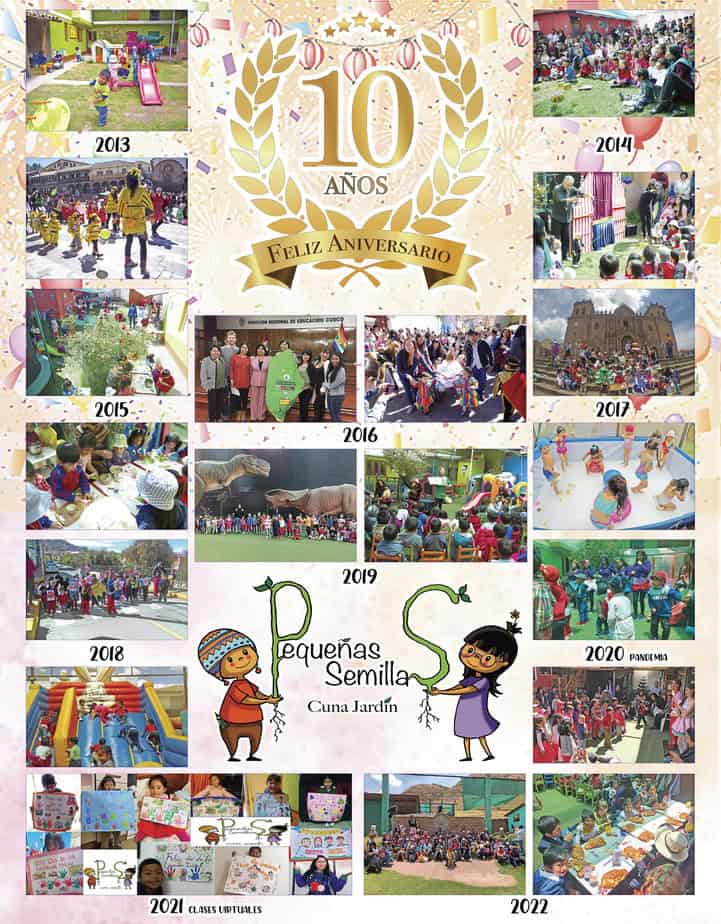 Realizamos talleres de Quechua y de Inglés Británico, con nuestro currículum propio aseguramos que los niños tengan un buen inicio en idiomas a nivel inicial. Los niños de 3 a 5 años tienen una hora diaria dedicada a inglés o quechua para desarrollar una segunda idioma a través de actividades lúdicas y significativas. Al salir del jardín los infantes adquieren unas 100 palabras en su vocabulario de inglés y quechua. Los libros están elaborados con la ilustradora Ana Burgos de España (elzeppelindeana.com), los cuales nuestros derechos de edición por su originalidad están protegidos por INDECOPI.